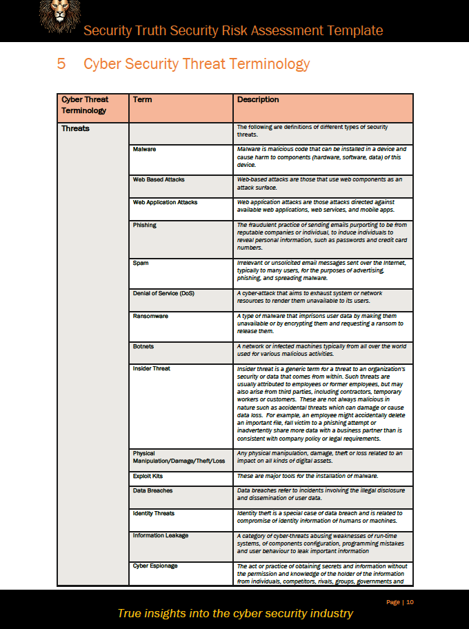 Security Truth's Security Risk Assement comes as a 15 page, Microsoft Word template.
